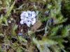 Rūtiņa ir 1 mm? (nevis 0,5 mm?) Par kājiņu nevar saprast, drīzāk izskatās, ka nav, vai nu ļoti īsa? Nobrieduši augļķermeņi nepaliek balti, bet paliek brūni? Plaisā neregulāri (ne daivās)? Man te tuvākā sanāca Diderma subincarnatum, kas ir grupās, netīras miesas krāsā, ar lielu kolumellu un kapilīcija zīmējums ir tieši tāds - caurspīdīgs ar kārpām. Sporas 13-16 mkm, viena puse gaišāka. Bet diametrs minēts 0,5-1 mm, kolumella krēmkrāsas/miesaskrāsas, raupja (te izskatās gluda), un aug nobirās, ne uz kritalām. Diderma subincarnatum aprakstā minēts, ka šī suga ir viegli nosakāma pēc kraukšķīgā(? crustose) perīdija, sarkanīguma(?), sēdošiem augļķermeņiem un lielajām sporām. Kopskats ir līdzīgs starojošajai olītei, bet tai sporām būtu jābūt mazākām, 9-12 µm, un nav viena puse gaišāka, nu un plus jāatveras kā ziedam (kas nepilnīgi nobriedušam var nebūt).