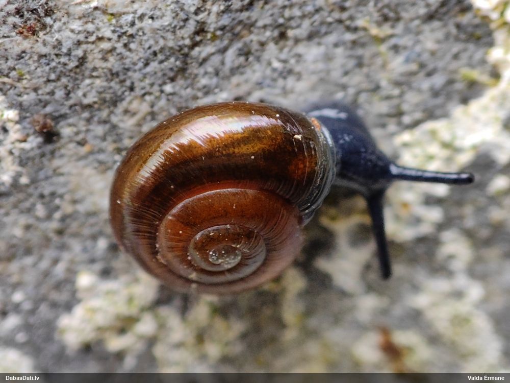 Pēc foto noteica Arturs Stalažs (nepieaudzis Cepaea sp., varētu būt C. hortensis)