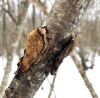 Skujkoks nav par tuvumā. Ir tikai lapu koki - lazda, kastanis, ābelītes. Otrpus celmam (D pusē) lejasdaļā, ko pamanīju pirmo, arī bija kaut kas no šim līdzīga, bet tik izsporojies, ka palicis tikai paliels brūns sporu pleķis. Intriga pavērot nākamgad.
