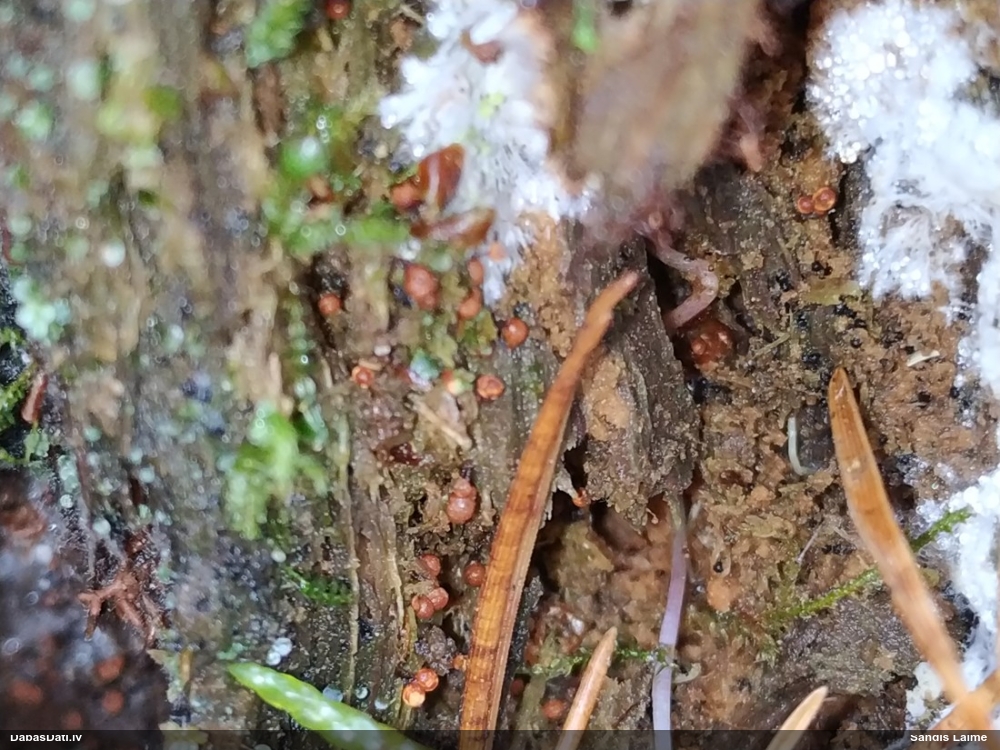 Paldies par paraugu! :) Mikroskopēju. Cukurīte ir droši, bet par sugu es vēl papētīšu. Tuvākā man zināmā sanāk Didymium bahiense, kam substrāts atbilst, jo aug uz visādiem augiem, bet tai it kā ir apaļas sporas, bet šīs tādas neregulāras un pat mazliet lauzītas. Jāsaprot, vai tā vnk gadījies, vai nav kādas citas sugas pazīme.