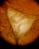 Vēl trīs foto: izdevās tīri labi izpūst sporas (kapilīciji nekur nebira); tad viegli uzsitu uz lielo bumbuli, kas acīmredzot ir tā hipokolumella - tas sadrupa, bet kapilīciji palika piestiprinājušies pie pseidokolumellas atlūzām; nu un pāri palika tas mazais paplatinājums kātiņa galā :) Julita, vai ir kāda versija par šīs lampītes sugu?