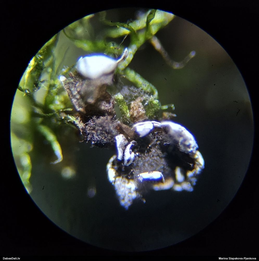 Man jau šķiet, ka cenšanās tikt pie nosaukuma bijusi tik veiksmīga, ka neredzu pat vajadzību mikroskopēt :), apskatīju tikai tuvplānā un pamērīju garumu (kas te nebija), bet kājiņa ir proporcionāli gara (nevis īsa, kā rakstīts), kas arī redzams 1.-2.foto. Bet interesantākais te ir cits - uz sūnas atradās arī jauka kriksīte, kuru ielikšu atsevišķā novērojumā. Ieteiktu nākmreiz nejauši ievākt mazliet vairāk eksemplāru, ne vienu vien. :D