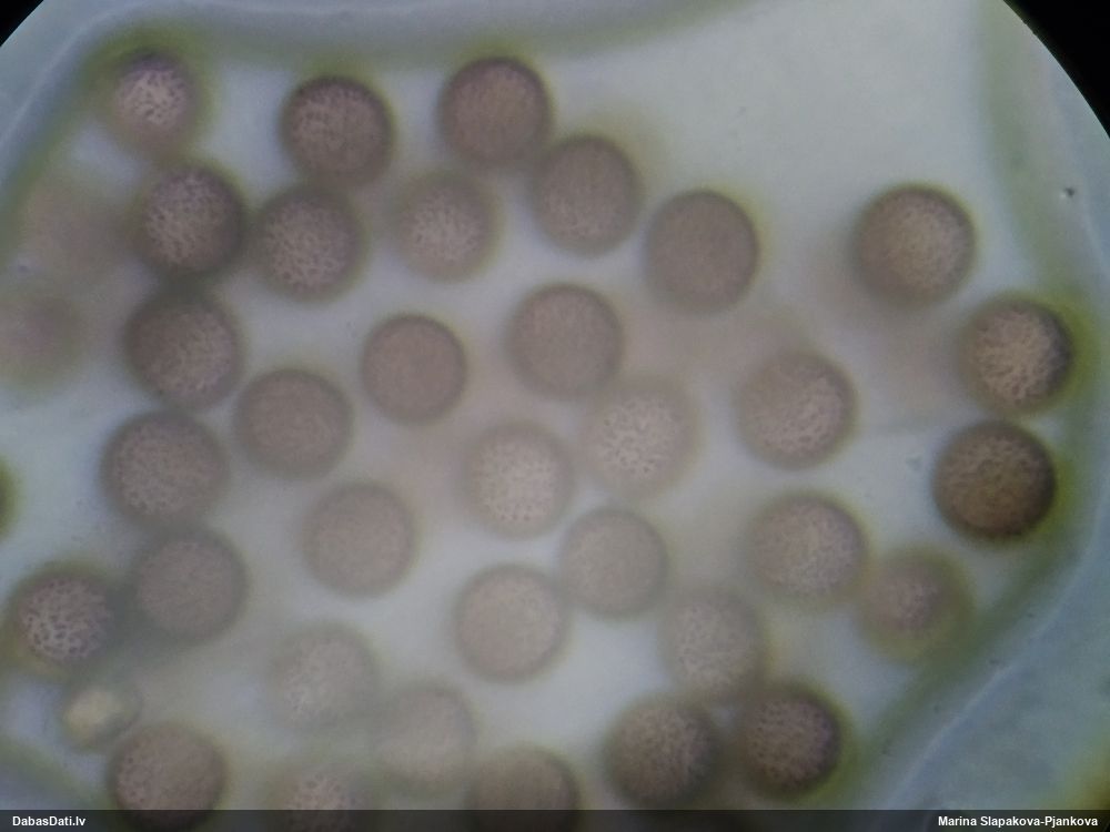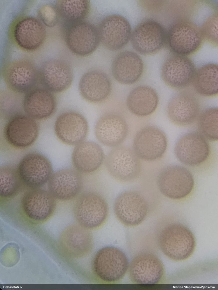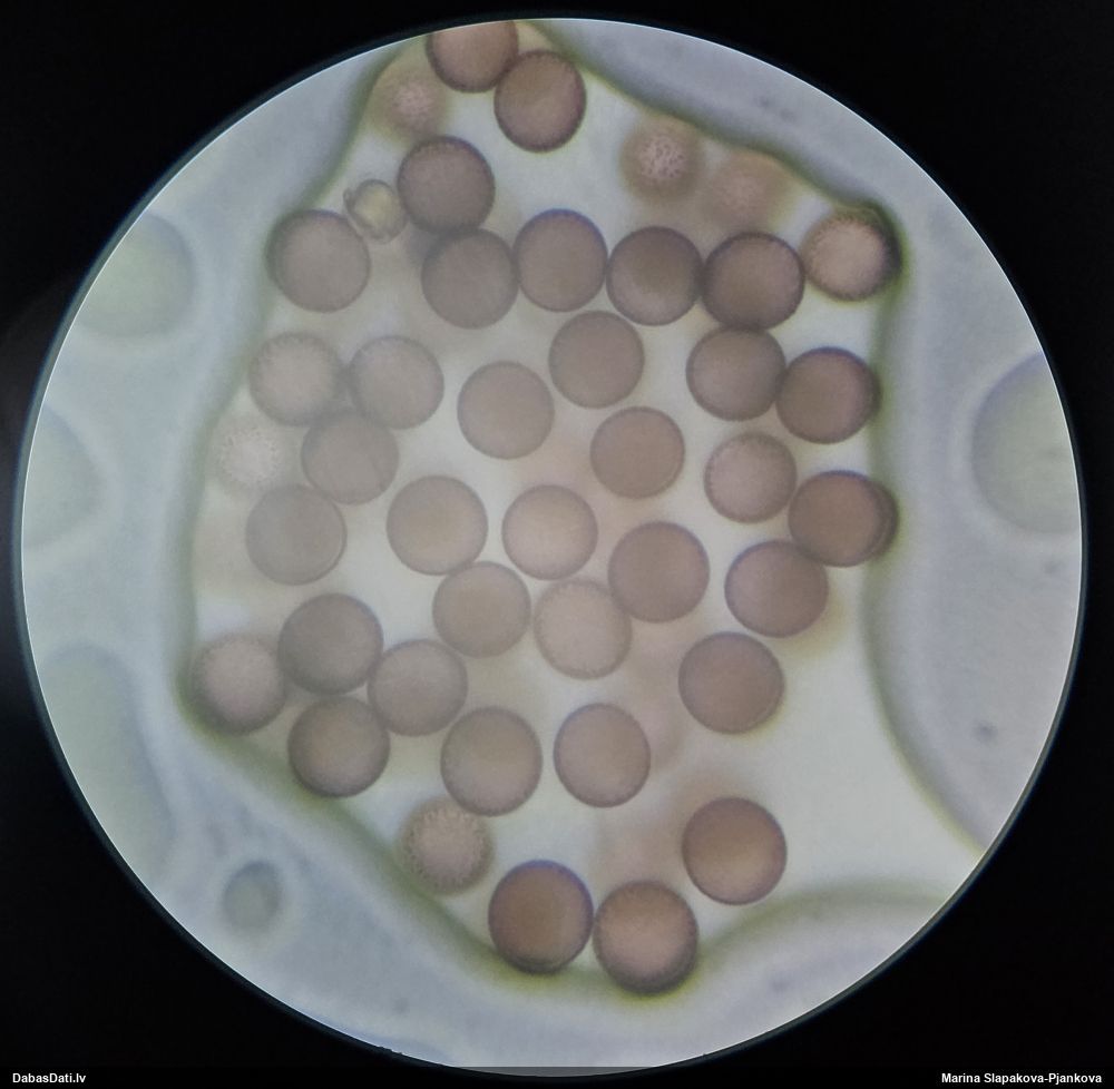 Žēl, ka te nav pielikts mērogs, kā mērīts. Bet ja nepilnīgi nobriedis (par ko liecinātu “iesprūšana” dzelteni-zaļganajā stadijā), tad sporas var izskatīties arī lielākas, nekā vajadzētu