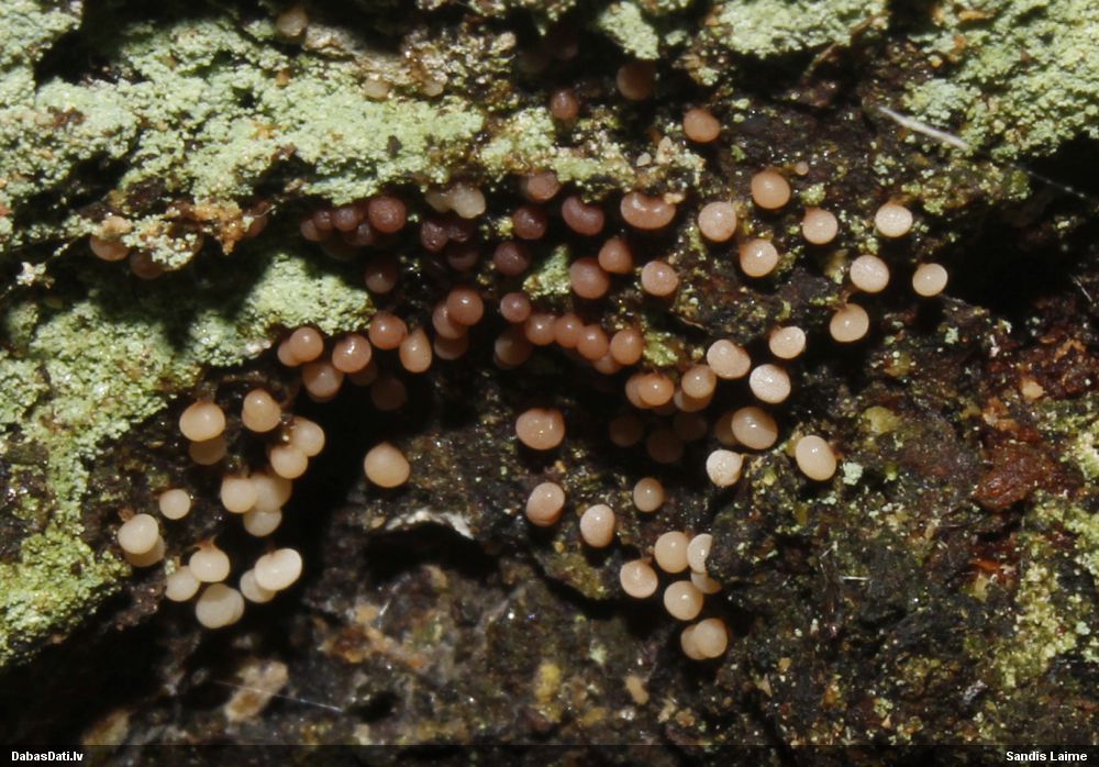 Skatoties uz nelīdzeno virsmu, var būt grubuļainais Fuligo luteonitens, bet droši to varētu pateikt mikroskopijā pēc sporām