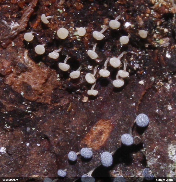 Mazie dzīves prieciņi! :) Lūk, pie kā noved cilvēku iedvesmošana uz gļotsēņošanu, nepieciešamas tikai pareizi iestatītas un sugu redzošas acis. Paraugs tika ķidāts ar pietāti, vēl ir pietiekami daudz materiāla. Atrašanai noteikti jāizmanto 40x lupa ar gaismiņu, bez tās neiztikt. Konkrētā sveķainā egle atšķīrās no visām pārējām, bija noliekusies 45 grādu lenķī, pasargāta no tiešiem nokrišņiem. Īpaša uzmanība jāvelta samtaini melnajam micēlijam, ar ko noklātas senas sveķainas rētas. Ja tiek ieraudzīti gļotsēnes augļķermeņi, tad viss uzreiz kļūst skaidrs. Tie ir pietiekami izteiksmīgi. Novēlu veiksmes visiem, kuri vēlas šo būtni ieraudzīt savām acīm! Vakar pārskatīju arī citas DMB audzes, tomēr bez sekmēm. Tomēr prasības pret dzīvotni nav gluži izšķirošas, Dānijā atrasta arī stādītās mono-audzēs. Jāturpina meklēt retās sugas :)