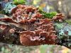 Šis bij pārsteigums. Ievācu bez cerībām, jo sakaltis. Hipotēze par gļotsēni, jo gļotaina apmale. Tā kā balts, sporu nebūs, neko zaudēt nevar, ielēju kastītē ūdeni (pat ne salvetes, vnk "dzīvu ūdeni") un aizmirsu. Krāmējoties pa kastītēm, atveru un - pārsteigums. Plānotā gļotsēne izaugusi 100x lielāka :D un izrādās sēne, kas mitrumā beidzot uzbriedusi. Kā tādu mikroskopēt, gan nezinu, jo tur tak receklis.. Tā ka vai pēdējie 2 mikro-foto par tēmu - nezinu.