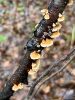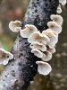 Cauri daudziem foto stiepjas tievi pavedieni (neskaitot to resno striķi), vajadzētu tiem labāku tuvplānu - vai uz tiem nav bumbuļveida paresninājumi dažās vietās. Resp., jāsaprot, vai tie ir sēņu pavedieni, vai kapilīcijs. Mizas sveķenīti es tā pārliecinoši neesmu mikroskopējusi. Nezinu, vai tai var būt līdzīgas sporas kā mainīgajai sveķenītei, bet mizas sveķenītei sporas mazliet grupējas (to var nepamanīt) un galvenais - tai ir tādi tievi gludi kapilīcija pavedieni ar maziem bumbulīšiem.