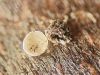 Rūtiņa ir 1 mm? (nevis 0,5 mm?) Par kājiņu nevar saprast, drīzāk izskatās, ka nav, vai nu ļoti īsa? Nobrieduši augļķermeņi nepaliek balti, bet paliek brūni? Plaisā neregulāri (ne daivās)? Man te tuvākā sanāca Diderma subincarnatum, kas ir grupās, netīras miesas krāsā, ar lielu kolumellu un kapilīcija zīmējums ir tieši tāds - caurspīdīgs ar kārpām. Sporas 13-16 mkm, viena puse gaišāka. Bet diametrs minēts 0,5-1 mm, kolumella krēmkrāsas/miesaskrāsas, raupja (te izskatās gluda), un aug nobirās, ne uz kritalām. Diderma subincarnatum aprakstā minēts, ka šī suga ir viegli nosakāma pēc kraukšķīgā(? crustose) perīdija, sarkanīguma(?), sēdošiem augļķermeņiem un lielajām sporām. Kopskats ir līdzīgs starojošajai olītei, bet tai sporām būtu jābūt mazākām, 9-12 µm, un nav viena puse gaišāka, nu un plus jāatveras kā ziedam (kas nepilnīgi nobriedušam var nebūt).
