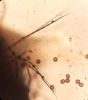 Sporas 12.5-14 (17), viena puse tām izteikti gaišāka. Kapilīcija pavedieni bezkrāsaini ( cik nu izdevās saskatīt) ar kārpām.