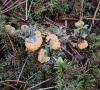 Uz trupējuša koka, pa daļai smiltīs kāpās. Piekopoju bildi. Sākumā pagāju garām, likās mandarīna miza.