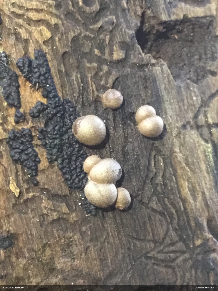 Šīs varētu būt jaunas pumpurītes (Physarum sp.) vai lampītes (Lamproderma sp.)