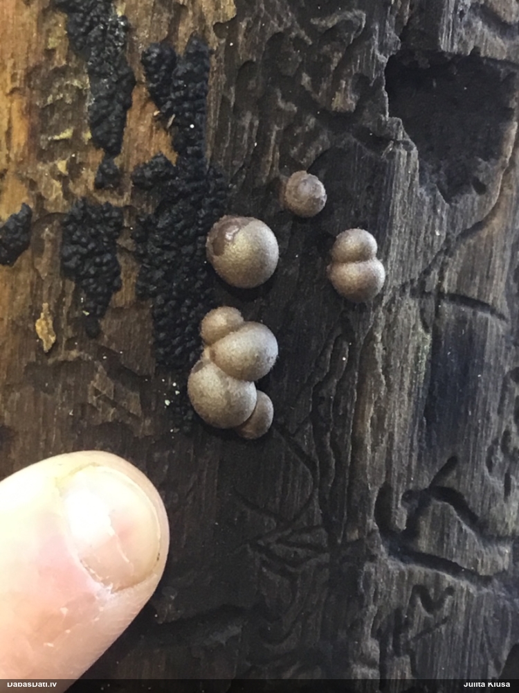 Paldies, Iveta! Julita, kā redzi – nevis dzīvs, bet tikai pusdzīvs ;) Par atrašanu – joprojām darbojos pēc principa bez piecām/sešām atrastām sugām no 250x250 m kvadrāta ārā neiet. Ja nav kritalu – rāpoju pa sūnām. Šis bija viens no kvadrātiem bez sugām, izvēlējos kritalu, tā bija patukša, blakus kritalai pamanīju šīs gļotsēnes. Beigās šajā vietā esmu iesprūdis, būs vēl daži interesanti atradumi. Tik jāatrod laiks mikroskopēšanai, sugu noteikšanai un salikšanai DD. Laika kā reiz šobrīd ļoti maz un brīvajos brīžos drīzāk gribas atkal aizskriet uz savu sūnu pleķi :) Par nosaukumu – domāju, ka rīkojamies līdzīgi kā ar Tavu Diachea (bij. Craterium) muscorum – tā kā šai sugai mums nav iegājies krāterītes nosaukums, saucam par vizulīti. Kaut, piekrītu, drīzāk izskatās pēc krāterītes.