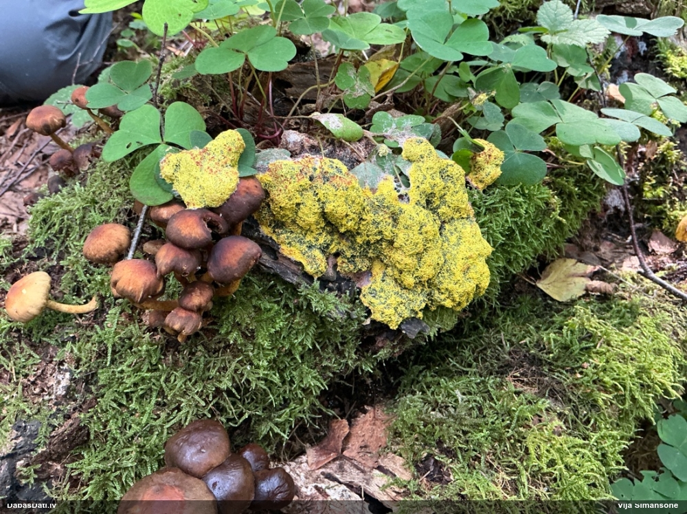 Pakāje tiešām rūsgana vai tikai tā izskatās? Skaidri redzu baltu pakāji un dzeltenu plazmodiju. Rūsganais tāds nesaprotams. Principā varētu būt arī dzeltenais ragansviests. ja tomēr rūsgans - tad licentii. Pēc rufas gan neizskatās, tā arī uz sūnām īsti neaug