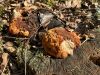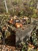 Satrūdējusi kritala mežā, nav dēļi. Iespējams, egle, jauktu koku mežs.
