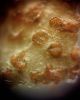 Kaut kas interesants :) Rudenī gļotsēnes attīstās lēnāk. Un ne vienmēr var uzminēt, kad tās ir gatavas sporu stadijai, resp., kā organizēt mitrumu. Vai šobrīd tiek mitrināts un viņas redz "dienas gaismu"? Iespējams, tās ir kādas olītes (Diderma). Reizēm tās pietiek palikt zem siltas lampas, un tās acu priekšā (sekunžu laikā) nobriest, maina krāsu, apvalciņš saplaisā un viss gatavs. Reizēm tā var sabojāt paraugu ;) Ja paraugs liels, var paeksperimentēt ar daļu, mēģinot pasildīt. Vēl pēc pāris dienām, ja nekas nemainītos, man droši vien beigtos pacietība, un es tādu pašu "iemestu mikroskopā", ja nu brieduma pietiek noteikšanai.