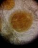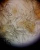 Vēl trīs foto: izdevās tīri labi izpūst sporas (kapilīciji nekur nebira); tad viegli uzsitu uz lielo bumbuli, kas acīmredzot ir tā hipokolumella - tas sadrupa, bet kapilīciji palika piestiprinājušies pie pseidokolumellas atlūzām; nu un pāri palika tas mazais paplatinājums kātiņa galā :) Julita, vai ir kāda versija par šīs lampītes sugu?