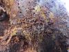 Nu šai sanāca pilnīgs detektīvs ar negaidītu rezultātu, kad viss izrādījās otrādi, nekā bija gaidāms :D Vispirms ievēroju, ka mums lielsporu kriksītes visas tā tiek noteiktas pēc lielām sporām un viss, kaut perīdija krāsa atšķiras. Iedziļinājos, sadalīju visus savus novērojumus "pa krāsiņām" un mēģināju vienai no tām piemērot otru sugu ar lielām sporām, kam nekur neizdevās atrast attēlu ar krāsām, jo pasaulē reti noteikta. Tikai pēc lielas meklēšanas tiku pie melnbaltiem attēliem, bet te svarīgākais ir krāsas. Tad nu nācās iedziļināties sugas aprakstos pa visiem pieejamiem noteicējiem (kopā 4 vai 5 tika izmantoti). Tā kā komplekts "krāsas plus maliņas raksts" nekur nesanāca, tad uznāca apskaidrība, ka visi apraksti tapuši ūdenī mikroskopētiem, bet mēs visu liekam KOH, kas maina krāsu. Tad nu meklēju vecos paraugus un jaunajā meklēju vēl kādu eksemplāru mikroskopēšanai, lai veiktu salīdzinājumu H2O un KOH. Liels bija pārsteigums, ka ūdenī sporu krāsas sugām "apgriezās otrādi" un beidzot viss salikās "pa plauktiņiem" - sarkanīgās sporas kopā ar maliņu ar daudzām izaugumu rindām. Bet punkts uz i bija birstošās kārpas, kas visos aprakstos bija pieminētas - no sporām viegli birstot kārpas, kuras varot redzēt arī atsevišķi nobirušas blakus. Un te tās bija! (3. foto no apakšas.) Ne tikai es ar šo sugu esmu maldījusies, jo ja internetā nav neviena sugas foto ar krāsām, tad ir grūti pie tam uzminēt, ka ūdenī viss izskatīsies citādi..