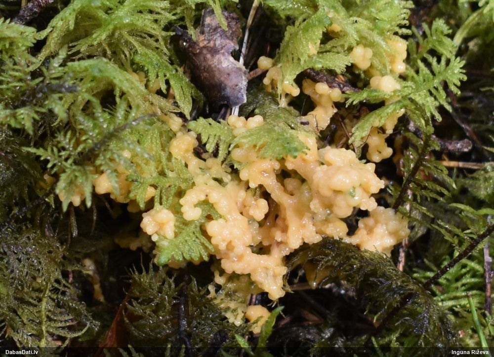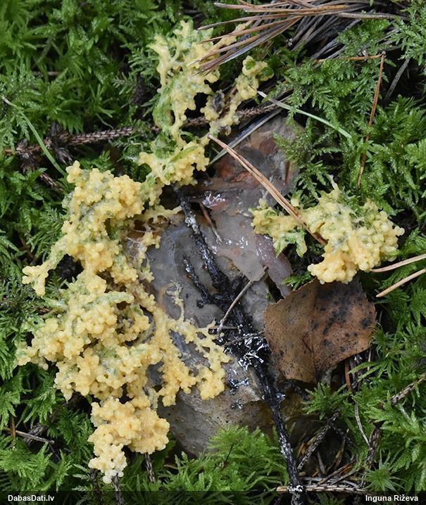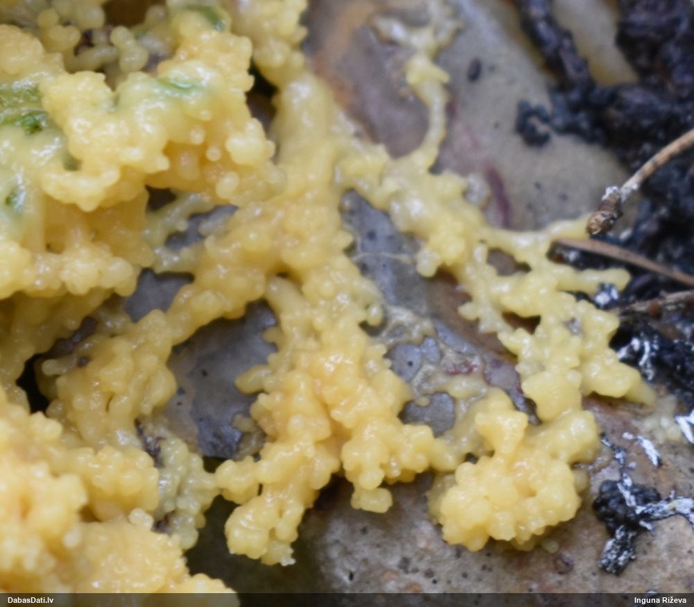 Skatoties uz nelīdzeno virsmu, var būt grubuļainais Fuligo luteonitens, bet droši to varētu pateikt mikroskopijā pēc sporām