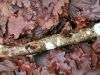 Atradu arī šo paraudziņu, pašā kastes apakšā. Perfekti notīrīta pakājes plēksnīte uz koksnes, viss pārējais ragansviests pārvērsts smalkā pulverī. Izdevās atrast arī nebojātas sporas.