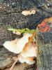 Šis ļoti interesants. Sporas ļoti traumētas, bet tām, kas ir veselas, ir diezgan skaidrs raksts, kas neatbilst nekam no man zināmiem ragansviestiem vai pumpurītēm (pat neņemot vērā izmēru), bet tīri labi atbilst baltapaļajai krāterītei, kas tā nevar būt, jo parauga "ciešais kamoliņš" ir stipri lielāks par tādu. Sporas pēc izmēra varētu atbilst Fuligo licentii, bet no dzeltenā te ir stipri maz. Ja vienīgi ir kāds nobriedušāka attēls, kas rāda, ka ir bijis dzeltens, bet no ilgas stāvēšanas izbalējis.
