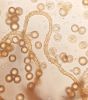 Vēl trīs foto: izdevās tīri labi izpūst sporas (kapilīciji nekur nebira); tad viegli uzsitu uz lielo bumbuli, kas acīmredzot ir tā hipokolumella - tas sadrupa, bet kapilīciji palika piestiprinājušies pie pseidokolumellas atlūzām; nu un pāri palika tas mazais paplatinājums kātiņa galā :) Julita, vai ir kāda versija par šīs lampītes sugu?