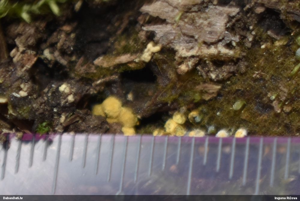 Raivo, nebūs Chaenotheca furfuracea, bet gan C.brachypoda (dabisku mežu indikatorsuga). C.furfuracea ir ar izteiktu laponi, daudz lielāki aķ un košāk zaļa krāsa