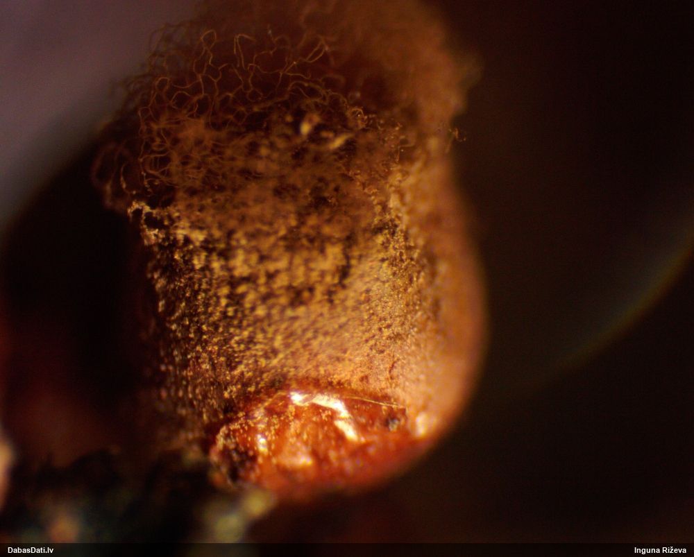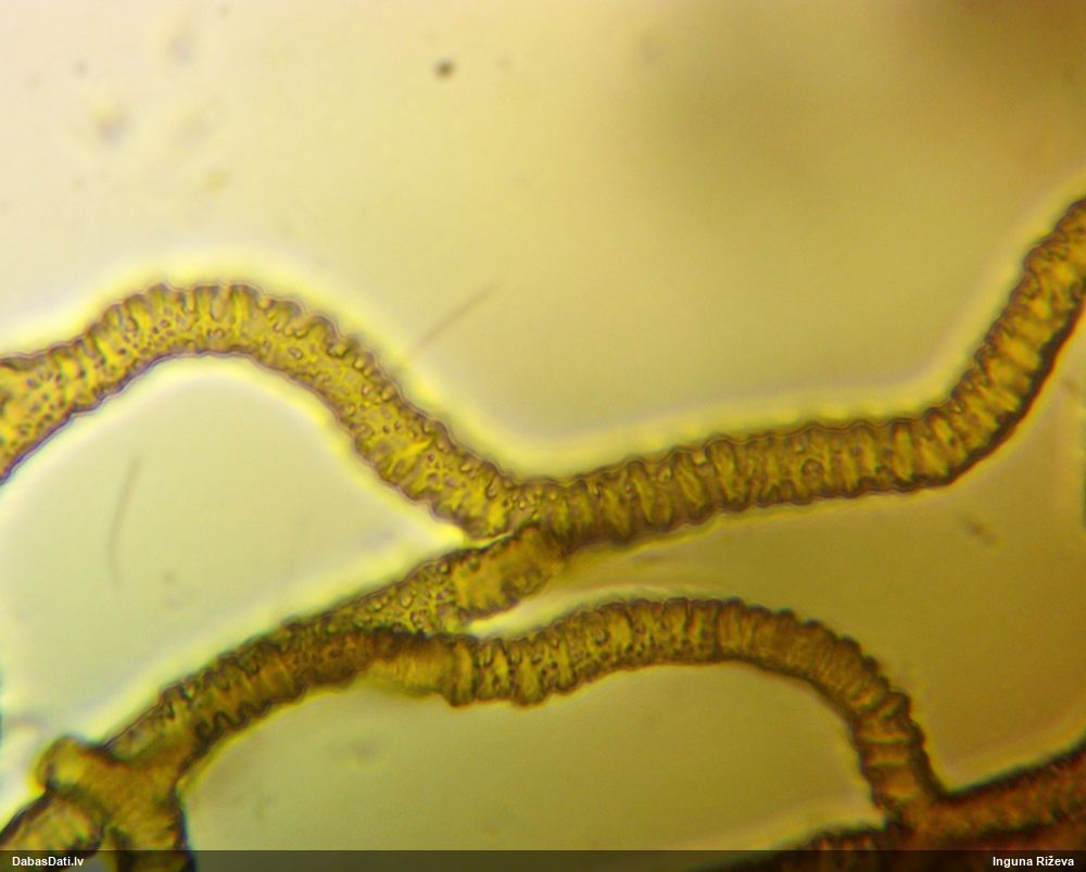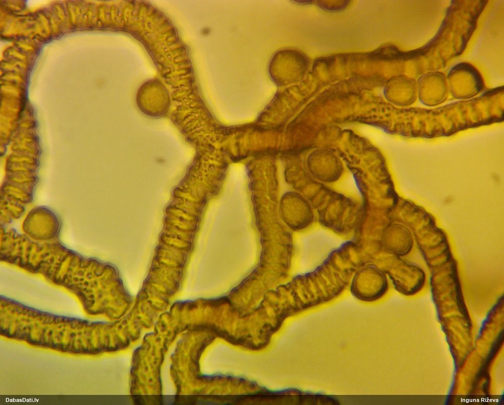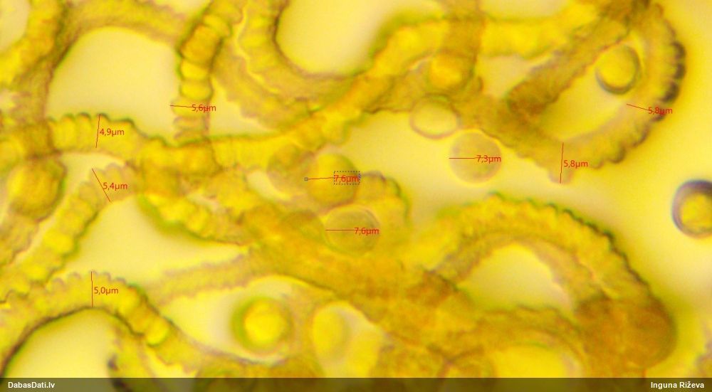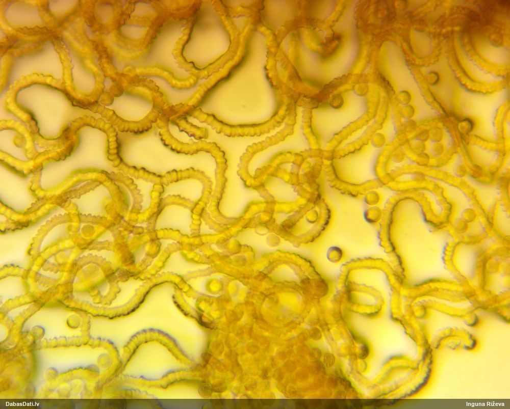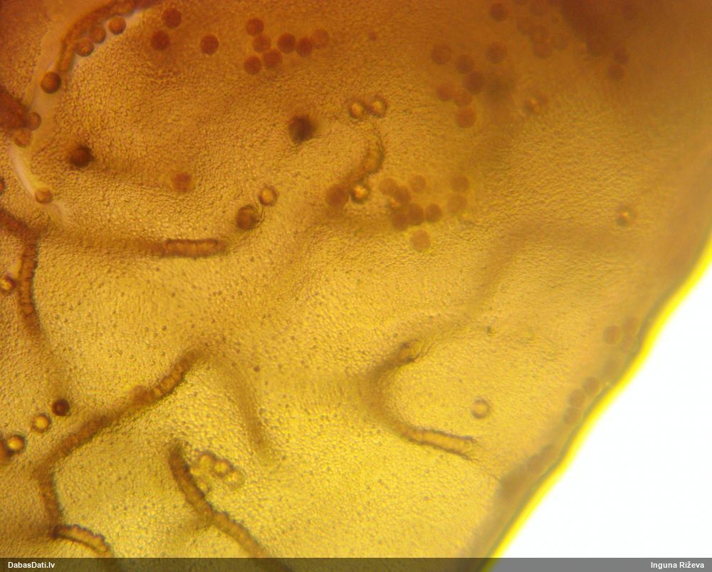 Šis man pašai sanāca pārsteigums. Ievācu paraugu ar domu "varbūt tur ir gļotsēne", dodot varbūtību apmēram pusprocentu, ka ir. Bet no mikroskopijas starp galīgi vecām sporām izdevās atrast ne tikai dažas labas, bet, galvenais, arī perfektus kapilīcija fragmentus, no kura suga, vēl kopā ar sporu pazīmēm, nosakāma nešaubīgi.