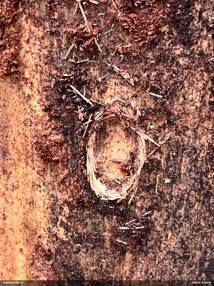 Atrastas tajā paša meža pļaviņā, kur bija nepārprotami piespirojuši aļņi iegarenām spirām ( 3,5 cm garumā un 2 cm platumā),bet šīs bija vienīgās apaļās starp daudzajām gareno spiru čupām. Vai tās arī ir aļņa spiras?