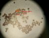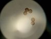 Un ja ir Badhamia, tad vajag arī uz stikliņa bez virsstikliņa mazos palielinājumos (lai nesaslapina okulāru) paskatīties, vai sporas negrupējas, pa divi vai vairāk. Te sporas izskatās ļoti apaļas, drīzāk negrupējas, bet paskatīties tāpat ir vērts.