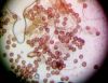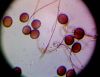 Pieliku vēl pāris foto ar "kātiņu" un kolumellu uz mm papīra. Pārmērīju galviņu - 0.98mm x 0.68 mm, bet sporas (9) 9,5- 11,5 mkm ( atsevišķas 13, 14 un 15 mkm). Laikam jau šim paraudziņam arī būs "jāatpūšas" :)