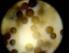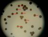 Un ja ir Badhamia, tad vajag arī uz stikliņa bez virsstikliņa mazos palielinājumos (lai nesaslapina okulāru) paskatīties, vai sporas negrupējas, pa divi vai vairāk. Te sporas izskatās ļoti apaļas, drīzāk negrupējas, bet paskatīties tāpat ir vērts.