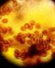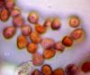 Šis bij pārsteigums. Ievācu bez cerībām, jo sakaltis. Hipotēze par gļotsēni, jo gļotaina apmale. Tā kā balts, sporu nebūs, neko zaudēt nevar, ielēju kastītē ūdeni (pat ne salvetes, vnk "dzīvu ūdeni") un aizmirsu. Krāmējoties pa kastītēm, atveru un - pārsteigums. Plānotā gļotsēne izaugusi 100x lielāka :D un izrādās sēne, kas mitrumā beidzot uzbriedusi. Kā tādu mikroskopēt, gan nezinu, jo tur tak receklis.. Tā ka vai pēdējie 2 mikro-foto par tēmu - nezinu.