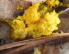 Šis ļoti interesants. Sporas ļoti traumētas, bet tām, kas ir veselas, ir diezgan skaidrs raksts, kas neatbilst nekam no man zināmiem ragansviestiem vai pumpurītēm (pat neņemot vērā izmēru), bet tīri labi atbilst baltapaļajai krāterītei, kas tā nevar būt, jo parauga "ciešais kamoliņš" ir stipri lielāks par tādu. Sporas pēc izmēra varētu atbilst Fuligo licentii, bet no dzeltenā te ir stipri maz. Ja vienīgi ir kāds nobriedušāka attēls, kas rāda, ka ir bijis dzeltens, bet no ilgas stāvēšanas izbalējis.