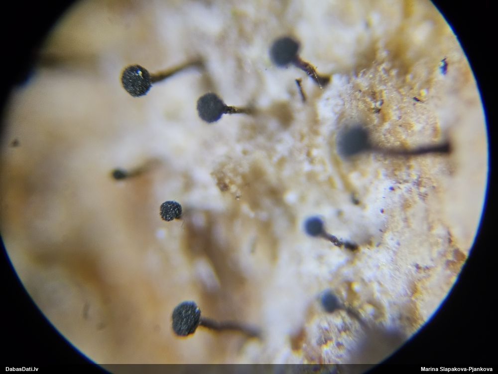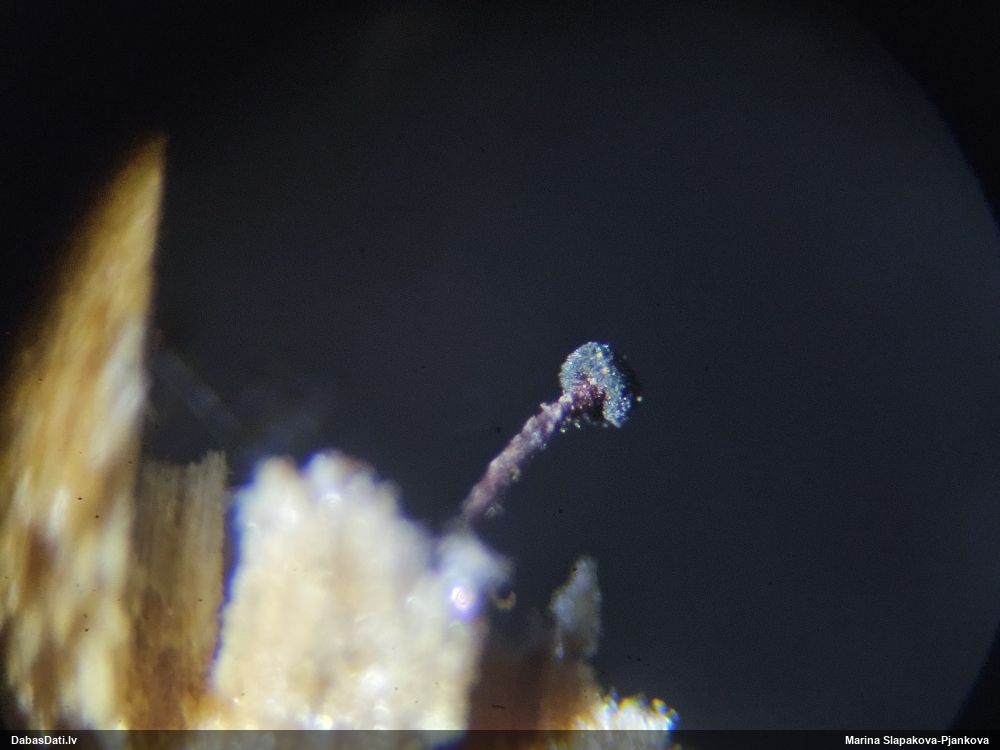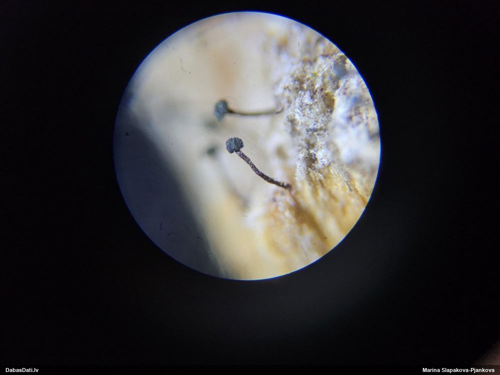 Šis man pašai sanāca pārsteigums. Ievācu paraugu ar domu "varbūt tur ir gļotsēne", dodot varbūtību apmēram pusprocentu, ka ir. Bet no mikroskopijas starp galīgi vecām sporām izdevās atrast ne tikai dažas labas, bet, galvenais, arī perfektus kapilīcija fragmentus, no kura suga, vēl kopā ar sporu pazīmēm, nosakāma nešaubīgi.
