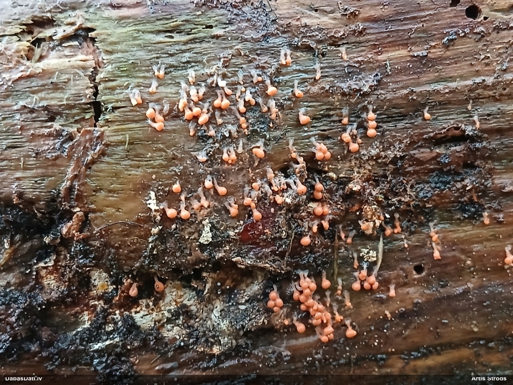 Paldies, Iveta! Julita, kā redzi – nevis dzīvs, bet tikai pusdzīvs ;) Par atrašanu – joprojām darbojos pēc principa bez piecām/sešām atrastām sugām no 250x250 m kvadrāta ārā neiet. Ja nav kritalu – rāpoju pa sūnām. Šis bija viens no kvadrātiem bez sugām, izvēlējos kritalu, tā bija patukša, blakus kritalai pamanīju šīs gļotsēnes. Beigās šajā vietā esmu iesprūdis, būs vēl daži interesanti atradumi. Tik jāatrod laiks mikroskopēšanai, sugu noteikšanai un salikšanai DD. Laika kā reiz šobrīd ļoti maz un brīvajos brīžos drīzāk gribas atkal aizskriet uz savu sūnu pleķi :) Par nosaukumu – domāju, ka rīkojamies līdzīgi kā ar Tavu Diachea (bij. Craterium) muscorum – tā kā šai sugai mums nav iegājies krāterītes nosaukums, saucam par vizulīti. Kaut, piekrītu, drīzāk izskatās pēc krāterītes.