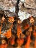 Vai tik nebūs medainā bumbulīte? Augļķermeņi vertikāli izstiepti, sporu mākonis ciešā klājienā.