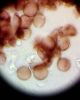 Nu, melnas! Varbūt būšu pārsteigusies, par kājiņu nepateikšu, aiziešu vēl apskatīt. Vai Jums ir kāda doma, kas cits tas varētu būt? No plazmodija bildēta tā pati vieta dažādās dienās, bet visu laiku smidzina, norakstīju uz sliktu attīstību. Nu, jā, zem un virs tā melnā ir tīģerkrāsas bumbiņas ar kājiņu. Ja ir cits variants, iešu ņemšu paraugu, mājās atnestais kaut cik nobriest, dabā nekā. Plazmodijs oranžs.
