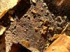 Izskatās, ka pa virsu pelējums, tāpēc neko saprast nevar. Sporas arī attiecīgi traumētas un grūti saprotamas. Ja pašai būtu paraugs, saprastu labāk. Bet vai varētu noteikt - nezinu. Jautājums, cik daudz iekšu sēne ir apēdusi. Nevar saprast, vai mikroskopijā redzamie baltie pavedieni ir gļotsēnei vai sēnei.