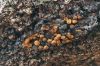 Man pēkšņi radās ideja - vai tur bija nu ļoti mitrs mikroklimats, egle ar melnalksni? Hipotētiski tādas dzeltenas var būt Diachea muscorum. Te bilde ir mazliet līdzīga: https://fr.wikipedia.org/wiki/Fichier:Craterium_muscorum,_Trawscoed,_North_Wales,_Aug_2016_-_Flickr_-_janetgraham84.jpg