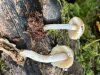 Ļoti neparasta kombinācija - īsa melna kājiņa un apaļīgi plakana galviņa. Un uz nobirām. Gļotsēņu atslēga kā cerīgāko piedāvā nabas jāņodzīti, bet tai neredzu "nabiņu" un nobirām arī nav raksturīga. Šķirstot noteicēju, visas līdzīgās atduras pret pēcsniedzītēm, kas gluži nevarētu būt :D Olītēm melnas kājiņas nav tipiskas (ja tiešām melna), tad paliek lampītes. Par garkājas lampīti (kā blakus) vismaz pagaidām šo nosaukt grūti ;) Atliek cerēt, ka nobriedīs tiktāl, lai mistēriju izdotos atrisināt :)
