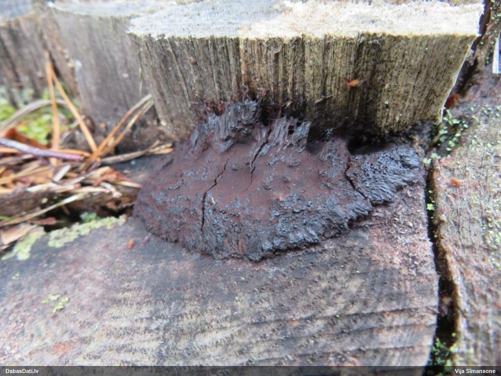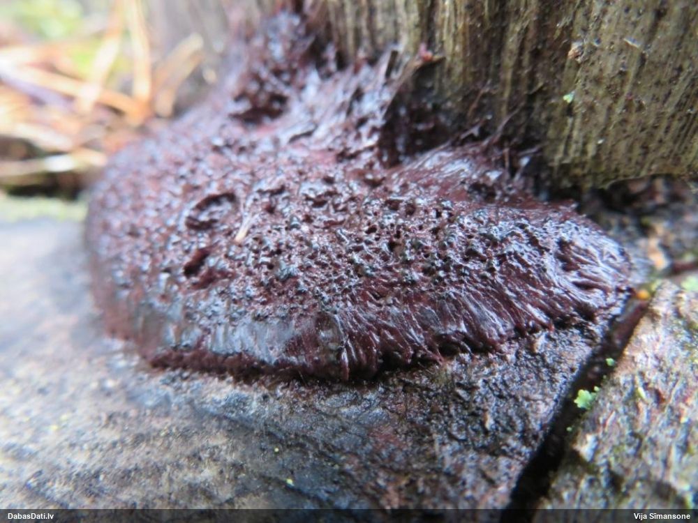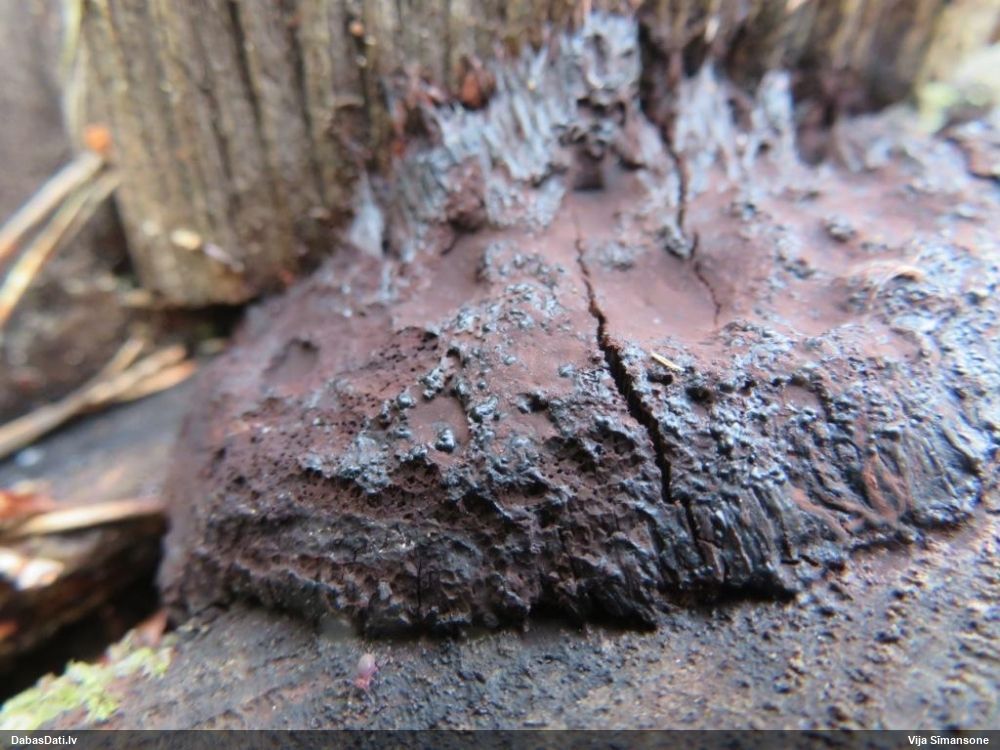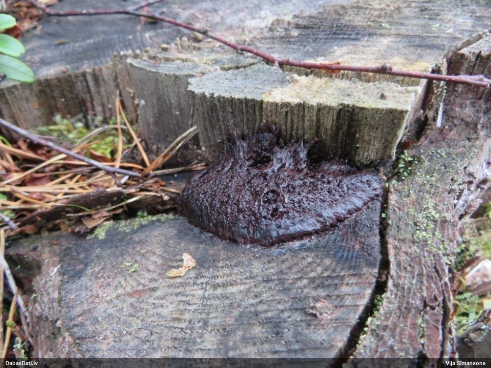 Konkrētā egle vēl joprojām vilka dzīvību, lai gan rētas bija ekstensīvas un noklāja visu stumbru vismaz līdz 2,5m H. Piekrītu, ka aprakstos minētas dzīvu egļu sveķainas rētas, lai gan raksturīgais melnais micēlija tīklojums novērojams arī uz nokaltušiem stumbriem, kamēr vien ir atbilstoši apstākļi tā eksistencei.. Joprojām neesmu atmetis entuziasmu atrast vēl kādu sugas atradni, tuvākajās dienās tiks apsekoti kārtējie biotopi.
