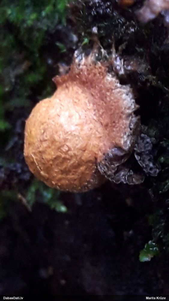 Šis varētu būt tāds piemērs, kad sāk dzīvi uz koksnes un tad uzplešas virsū sūnai. Man izskatās, ka šai vajadzētu būt rufai, nu tāds sarkans. Pat divi perīdiji 2. foto no apakšas tīri pārliecinoši - dzeltenais plānais un tad pa virsu malā var redzēt tumšo.