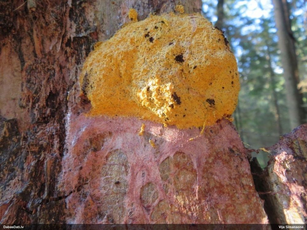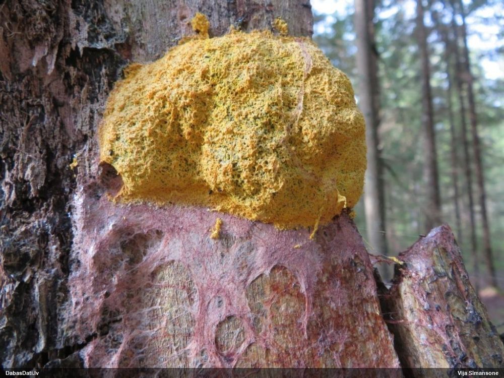 Varētu būt grubuļainais (Fuligo luteonitens), bet jāmikroskopē sporas, lai būtu droši