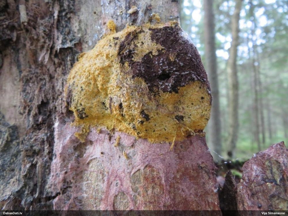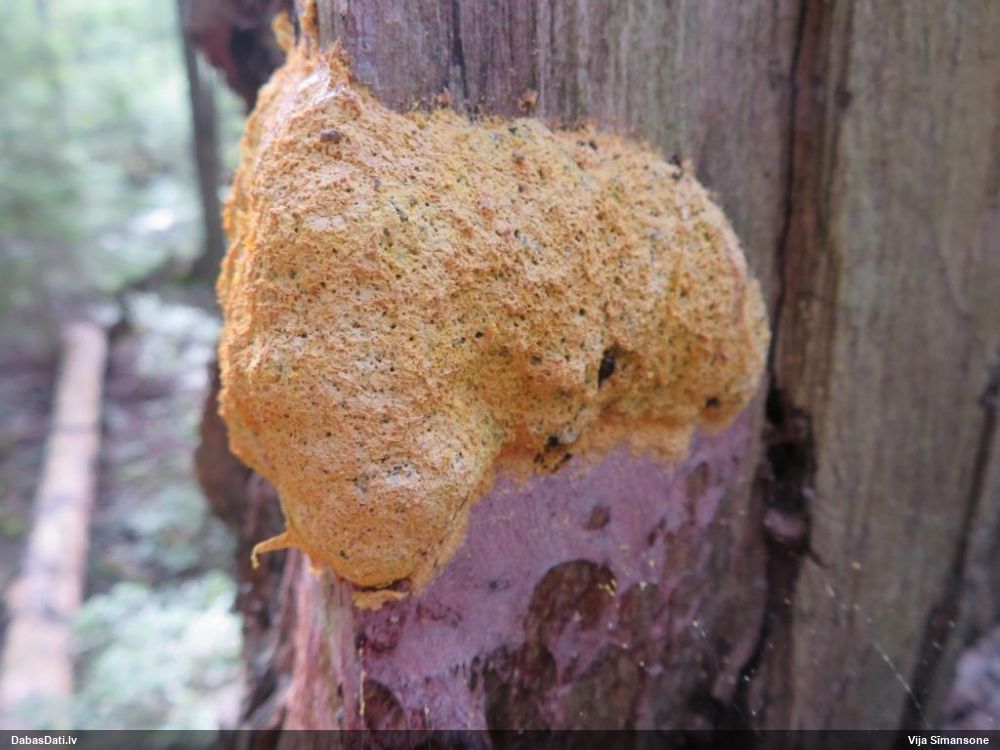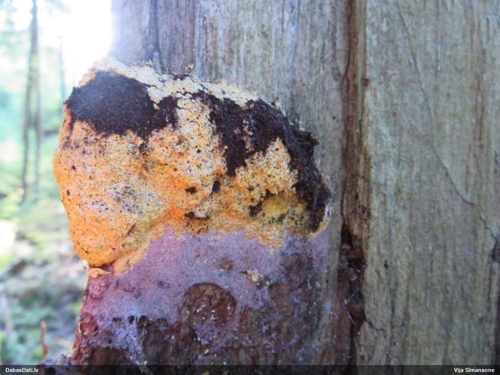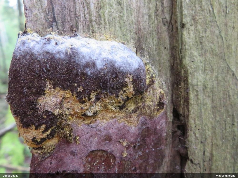 Heterobasidion annosum. Parasti uz priedēm, retāk uz citiem skuju kokiem, vēl retāk uz lapu kokiem, t.sk. uz bērziem.