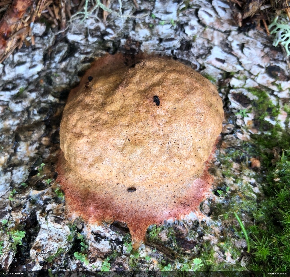Šis varētu būt tāds piemērs, kad sāk dzīvi uz koksnes un tad uzplešas virsū sūnai. Man izskatās, ka šai vajadzētu būt rufai, nu tāds sarkans. Pat divi perīdiji 2. foto no apakšas tīri pārliecinoši - dzeltenais plānais un tad pa virsu malā var redzēt tumšo.