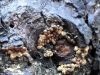 Atradu arī šo paraudziņu, pašā kastes apakšā. Perfekti notīrīta pakājes plēksnīte uz koksnes, viss pārējais ragansviests pārvērsts smalkā pulverī. Izdevās atrast arī nebojātas sporas.