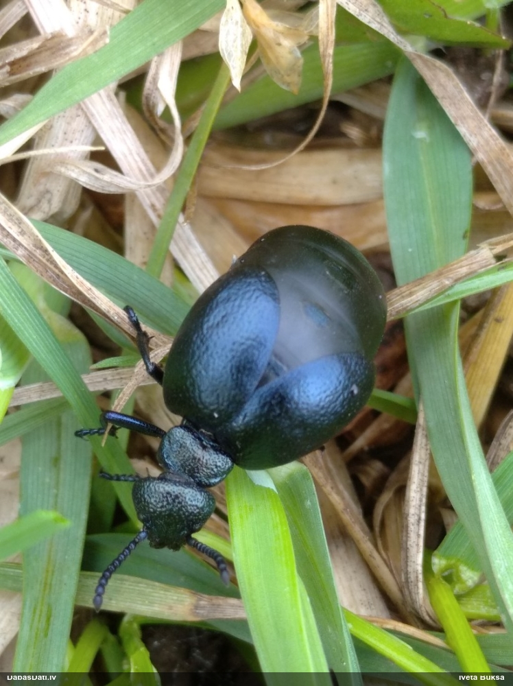 Zilganzaļā eļļasvabole, Meloe brevicollis
