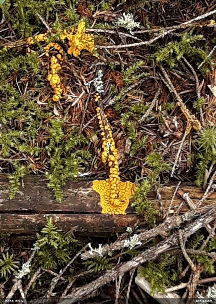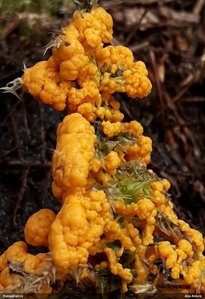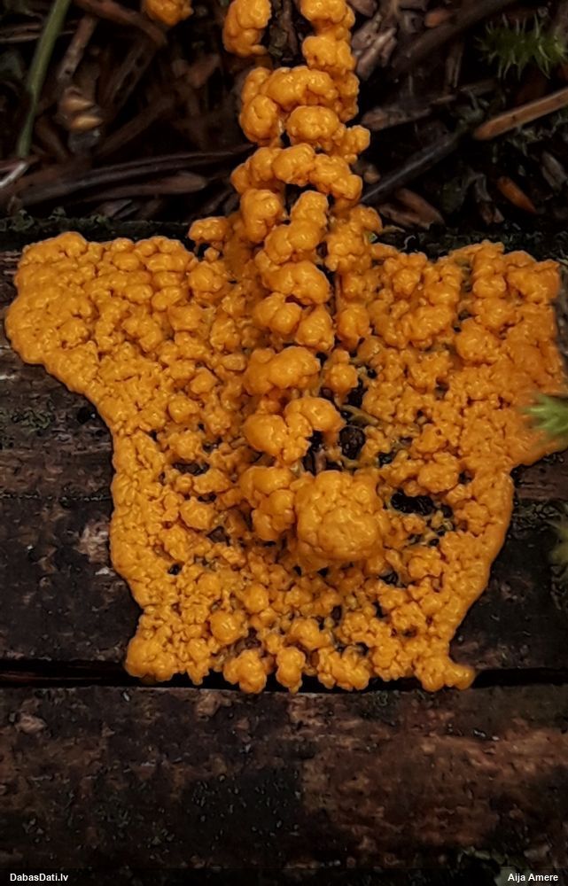 Skatoties uz nelīdzeno virsmu, var būt grubuļainais Fuligo luteonitens, bet droši to varētu pateikt mikroskopijā pēc sporām