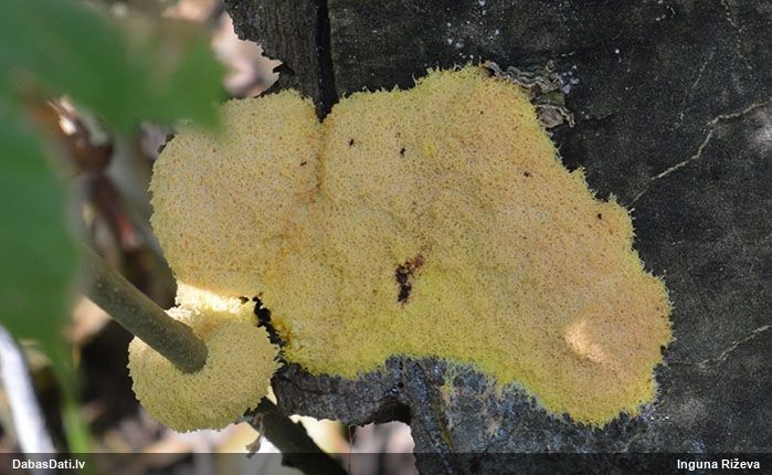 Njā, Laimai pamatīgs pētījums... Paldies, Julita, par jauko pārsteigumu! Un tā apse man kā tāda Pandoras lāde, beigās būs jāsaskaita, cik sugu tā man šogad sagādāja. Uzgāju to pērn, vēl gluži jaunu, bet virsū atradu tikai vienu gļotsēni (tā kā ragansviestu, neziņoju) sporu stadijā, apsekoju šogad - pilna miza un zemmiza visādu brīnumu! Un tā rozā krāsa vairākos plazmodijos! Šeit padzēsu liekās bildes, lai novērojums paliek saprotamāks, pārskatāmāks. Un tā vēlā attīstība - piekrītu, ka reti novērota, jo parasti ap tādu laiku ir ja ne sniegs, tad sals noteikti.