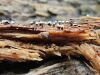 Skujkoks nav par tuvumā. Ir tikai lapu koki - lazda, kastanis, ābelītes. Otrpus celmam (D pusē) lejasdaļā, ko pamanīju pirmo, arī bija kaut kas no šim līdzīga, bet tik izsporojies, ka palicis tikai paliels brūns sporu pleķis. Intriga pavērot nākamgad.